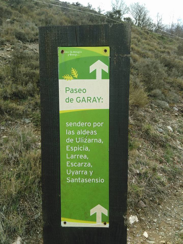 Minuto uno y ya calentamos aascendiendo por la pista que nos señaliza la ruta de Garay, aunque nosostros haremos alguna modificación.