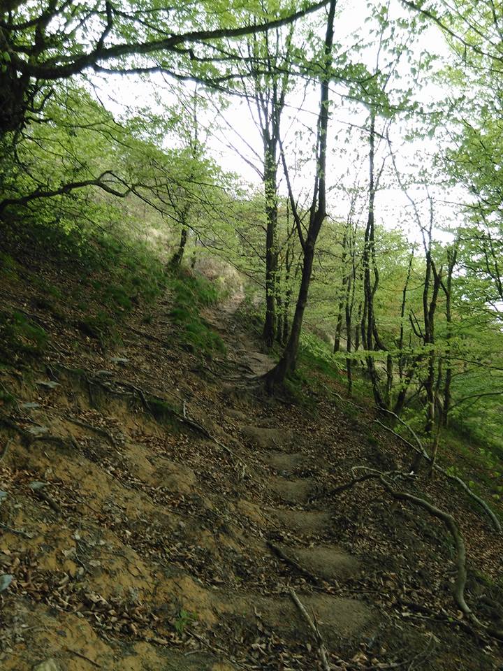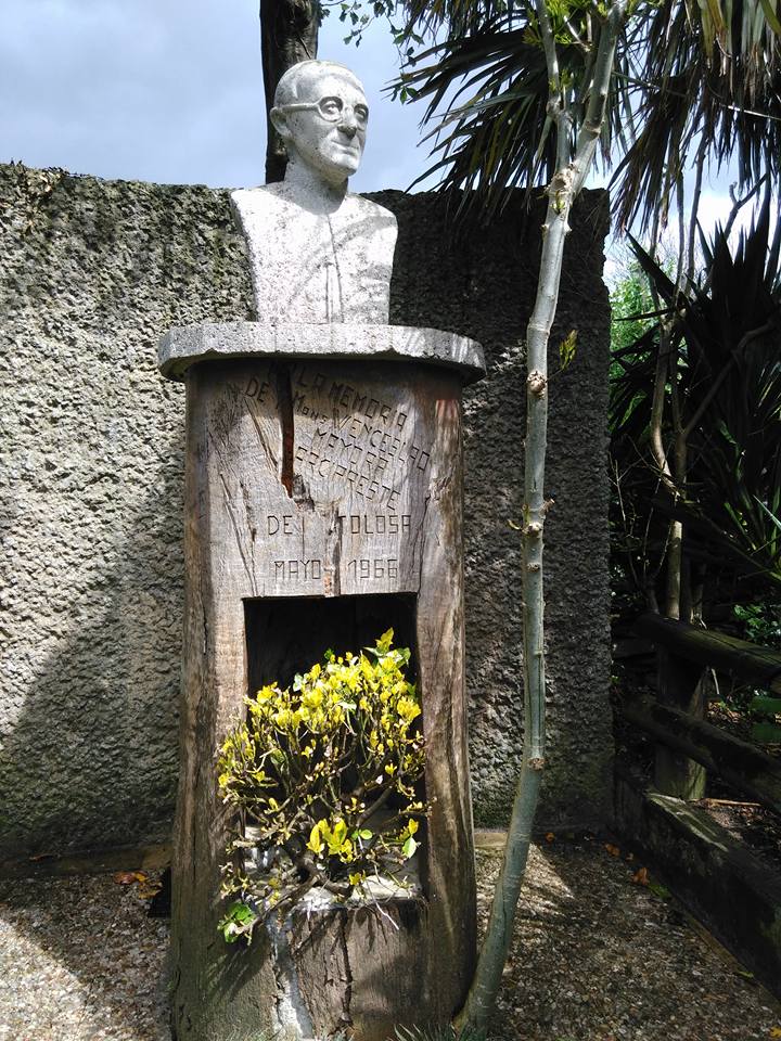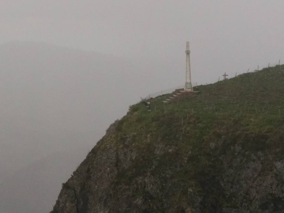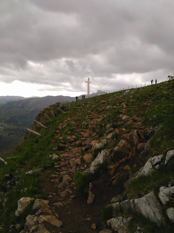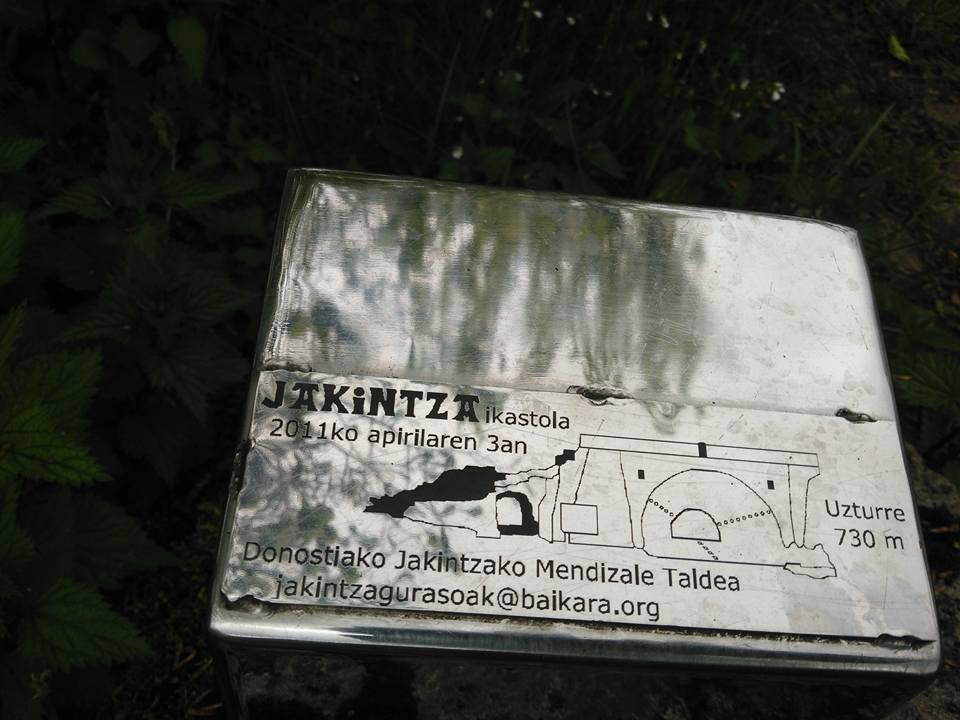 Cuando la ruta comienza a ascender hacia la cresta arbolada, junto al sendero, aparece un pequeño muro de piedra, hay que estar atentos para desviarnos por la derecha y alcanzar la cima donde se encuentran los buzones del Uzturre ( 730 m ) y el vértice geodésico escondidos entre la maleza..... Se regresa al sendero junto al muro de piedras y se continua descendiendo hasta llegar a la imponente Cruz de Uzturre y su fantástico mirador sobre Tolosa y el valle del Oria. La vuelta a la Ermita de Izaskun la haremos por la ruta clásica.